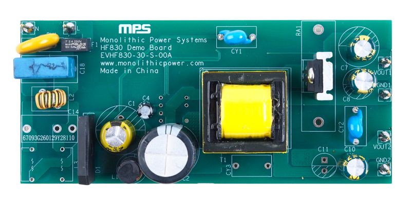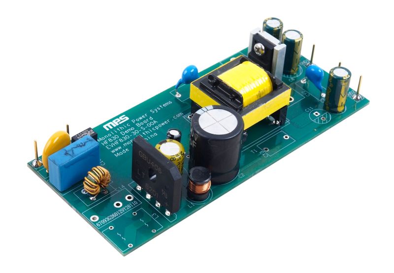 The EVHF830-30-S-00A evaluation board provides a reference design for a universal, offline, isolated power supply with 35W of output power.