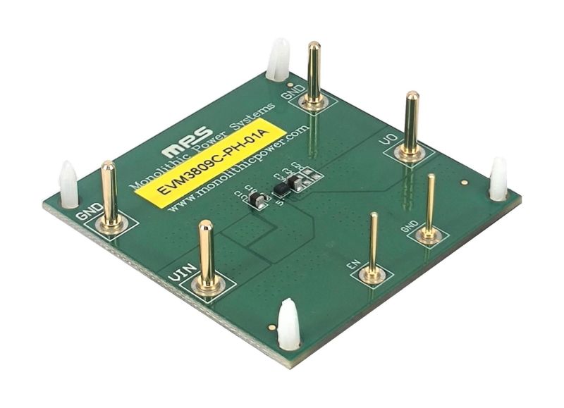 The EVM3809C-PH-01A evaluation board is designed to demonstrate the capabilities of the MPM3809C, a fully integrated, high-efficiency, synchronous step-down power module. The device provides up to 0.6A of output current (IOUT).
