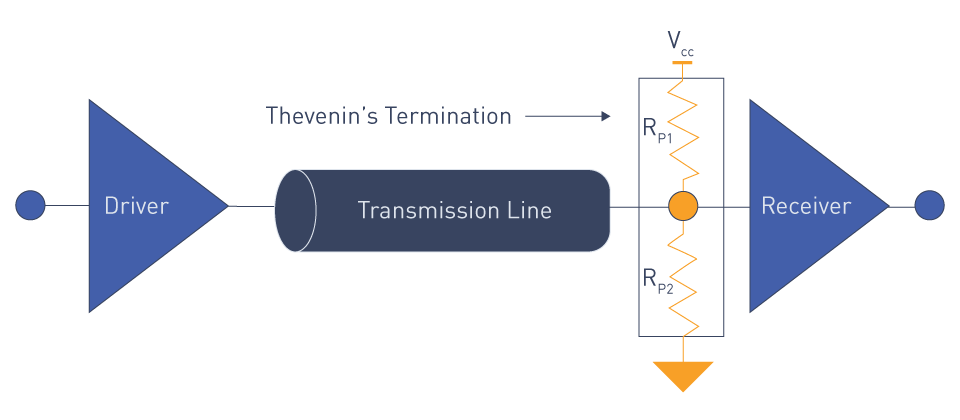 - Thevenin Termination: To match the impedance and stabilize the signal at a specific voltage level, pull-up and pull-down resistors are used in combination. Logic circuits and bidirectional buses frequently employ this technique.