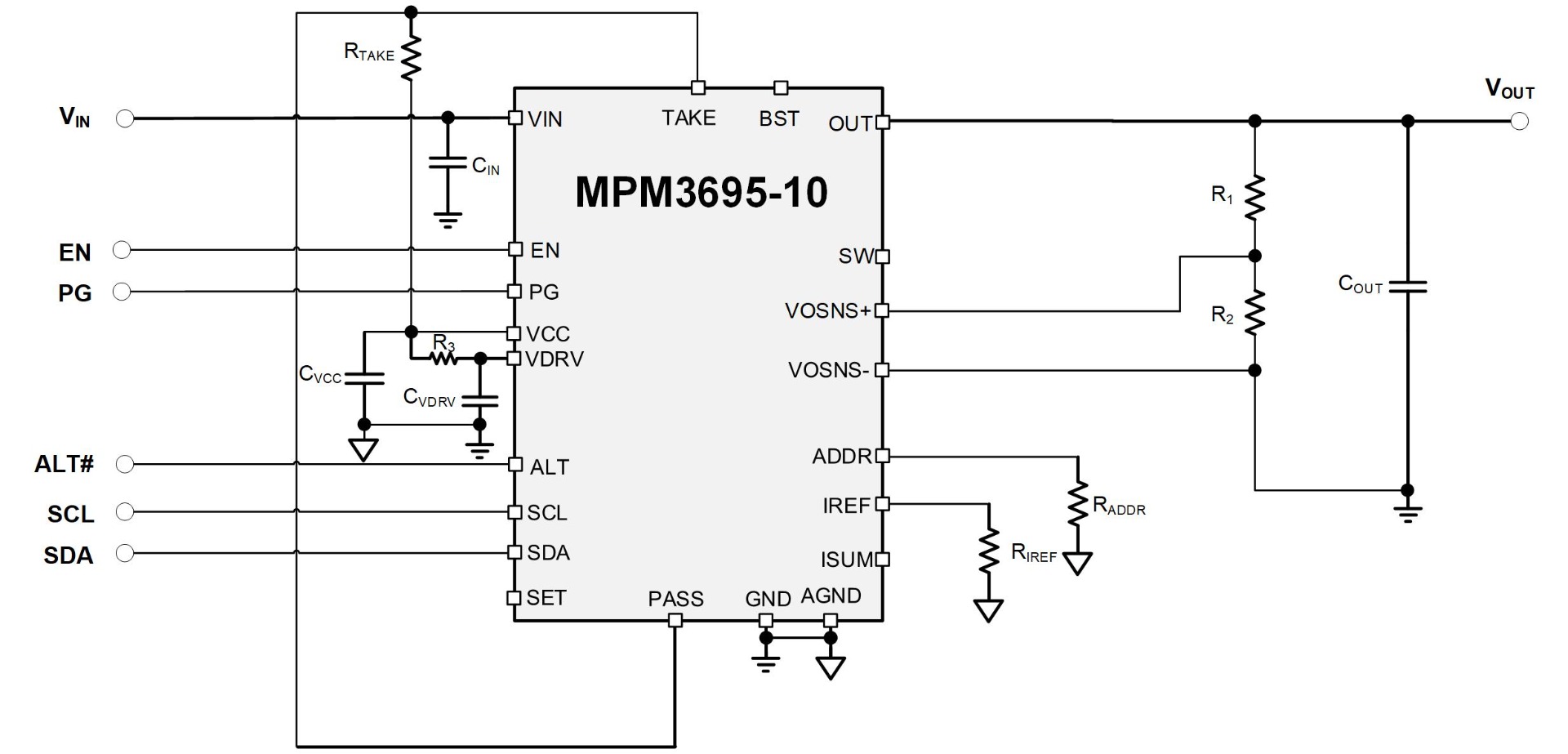 The MPM3695 family (MPM3695-10, MPM3695-20, MPM3695-25, and MPM3695-100) was introduced to deliver up to 800A of current with ultra-fast transient response and excellent voltage tolerance. Depending on the application, designers can use either external or internal voltage dividers to provide excellent flexibility. The internal resistor divider offers compactness, integration, and ease of use. These features make the device suitable for designs with stringent space and performance requirements; meanwhile, the external resistor dividers provide flexibility, customization, and improved thermal management.