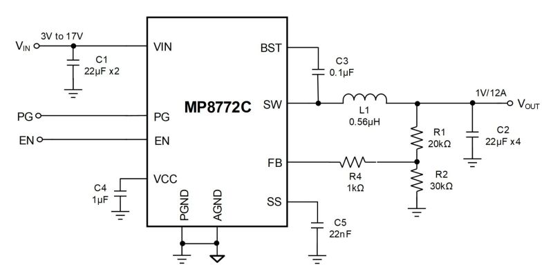 The MP8772C requires a minimal number of readily available, standard external components, and is available in a space-saving QFN-16 (3mmx3mm) package.