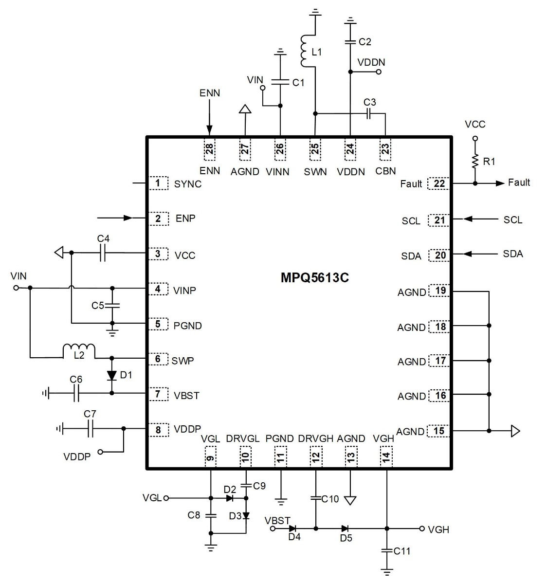 - Configurable VGH: 5V to 43.2V, with 50mA Current