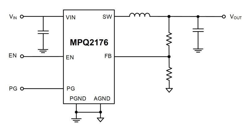 The MPQ2176-6003-AEC1 achieves up to 6A of output current (IOUT) across a 2.4V to 5.5V input voltage (VIN) range, with excellent load and line regulation. The output voltage (VOUT) can be regulated to as low as 0.4V.