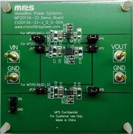EV2013A-33-J-Q-G-00Aは、高電圧バッテリーを備えたシステムに電力を供給する低電力リニアレギュレータであるMP2013A-33、MPQ2013A-33、および、MPQ2013A-33-AEC1の評価ボードです。