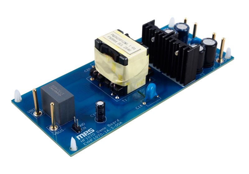 The EVHF1070-1A-S-00A is an evaluation board designed to demonstrate the capabilities of HF1070-1A. The HF1070-1A is a highly integrated continuous conduction mode (CCM)/quasi-resonant (QR) flyback regulator with an integrated 1700V SiC. The QR control method is suitable for high-performance and high-efficiency design. Unlike conventional QR flyback controllers, the frequency foldback in the HF1070-1A ensures high efficiency across the entire load range.