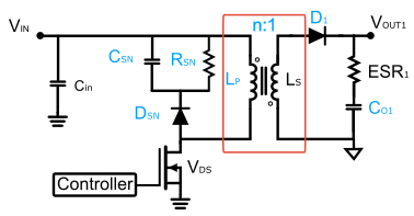 If spikes occur, tune the value of the snubber resistor value until optimal performance is found. The resistor of the RCD clamp always dissipates power, even when there is no power in the main converter.
