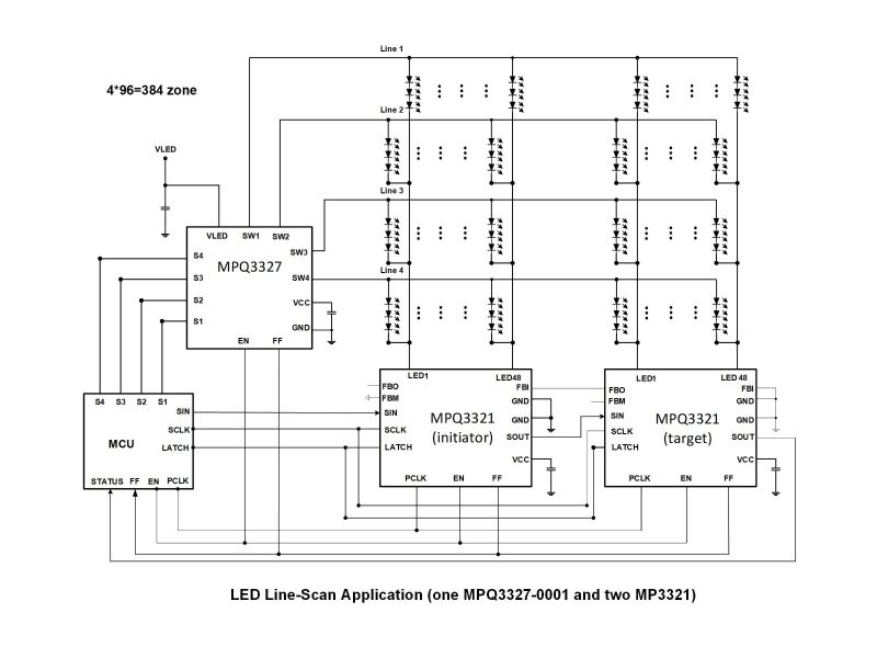 MPQ3321-AEC1製品48-Channel, Max 80mA/Ch, Current Source LED Driver with Independent Analog and PWM Dimming, AEC-Q100 Qualified