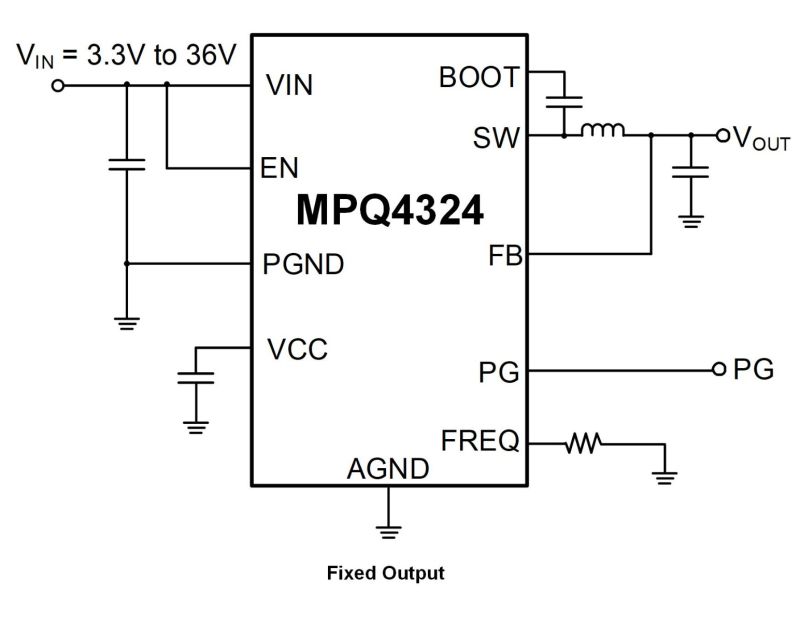 MPQ4324GLE-4000-AEC1は、ピーク電流モード制御で最大4Aピークの高効率出力電流 (IOUT) を実現します。3.3V〜36Vの広い入力電圧 (VIN) 範囲および42Vのロードダンプ耐性は、車載用の入力環境でのさまざまなステップダウンアプリケーションに対応します。1μAのシャットダウンモードでの静止電流 (自己消費電流) が、デバイスをバッテリー駆動アプリケーションで使用可能にします。