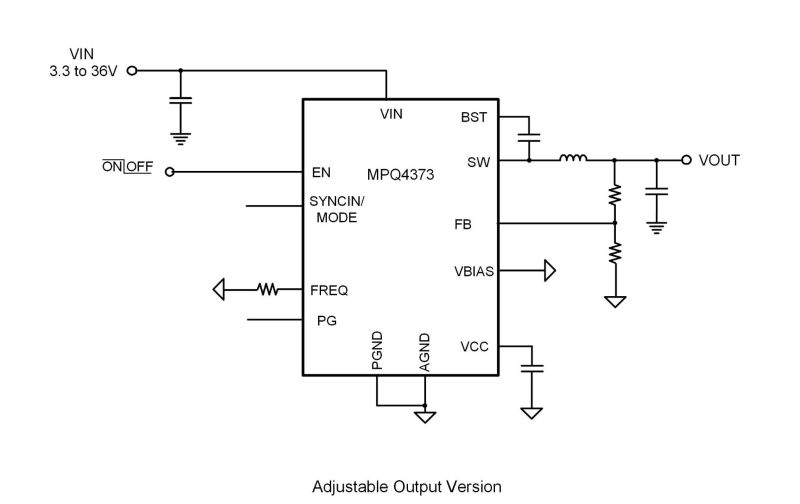 The MPQ4373-AEC1 is available in an LGA-16 (3.5mmx4.5mm) package. It is available in AEC-Q100 Grade 1.