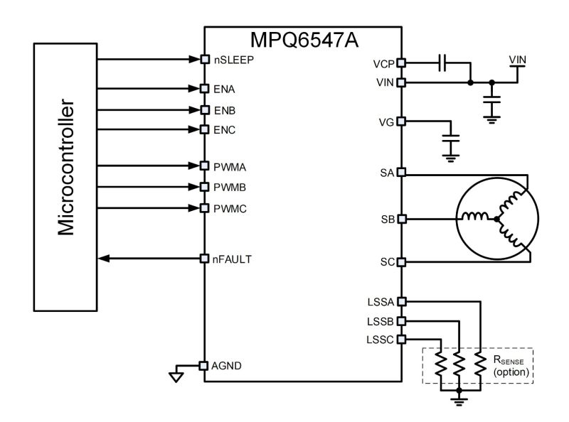 MP6545A製品45V、2.5A、電流測定機能付きのシンプルな三相電力段