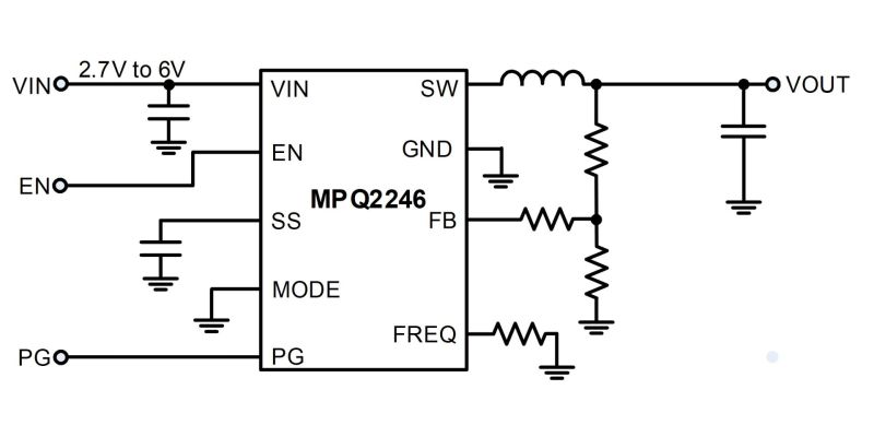 MPQ2246-AEC1は、2.7V~6Vの入力電圧 (VIN) 範囲にわたって最大6Aの連続出力電流 (IOUT) に対応し、0.606Vの低さの出力電圧 (VOUT) を生成します。自動車のインフォテインメント、クラスタ、テレマティクス、携帯機器など、幅広いアプリケーションに最適です。