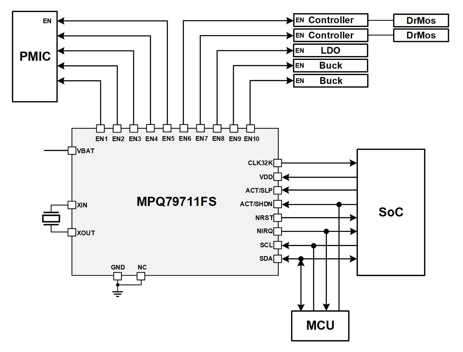 MPQ79711FS-AEC1製品MPSafeTM, ASIL-B, 10-Channel Power Sequencer, AEC-Q100 Qualified