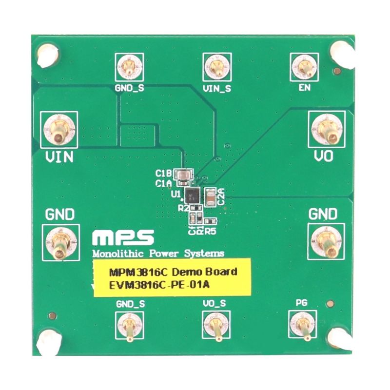 The EVM3816C-PE-01A is an evaluation board designed to demonstrate the capabilities of the MPM3816C, a fully integrated, synchronous, rectified, step-down, DC/DC power module with up to 1A of continuous output current (IOUT).