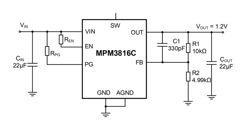 The MPM3816C requires a minimal number of readily available, standard external components, and it is available in an ultra-small ECLGA-10 (2mmx2.2mmx1.2mm) package.