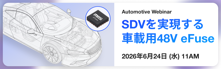 当ウェビナーでは、自動車アーキテクチャの最新の動向を踏まえながら、eFuseへの移行によるメリットや課題に言及します。また、MPSの48V eFuse製品の特性、メリットなどもご紹介します。